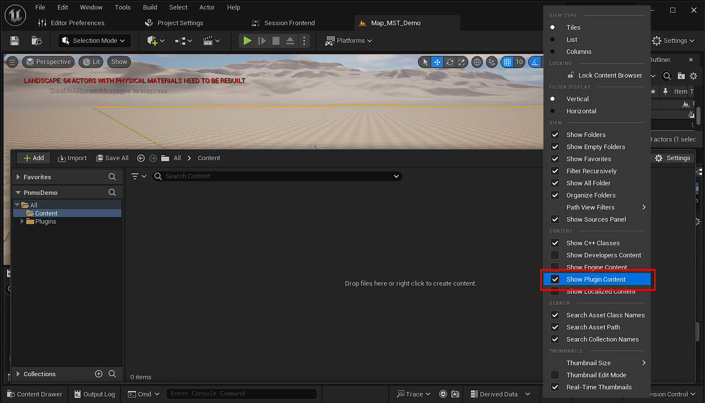 First open the editor. When the editor is loaded find the Plugin Folders for the MSTC Content and MST Content.